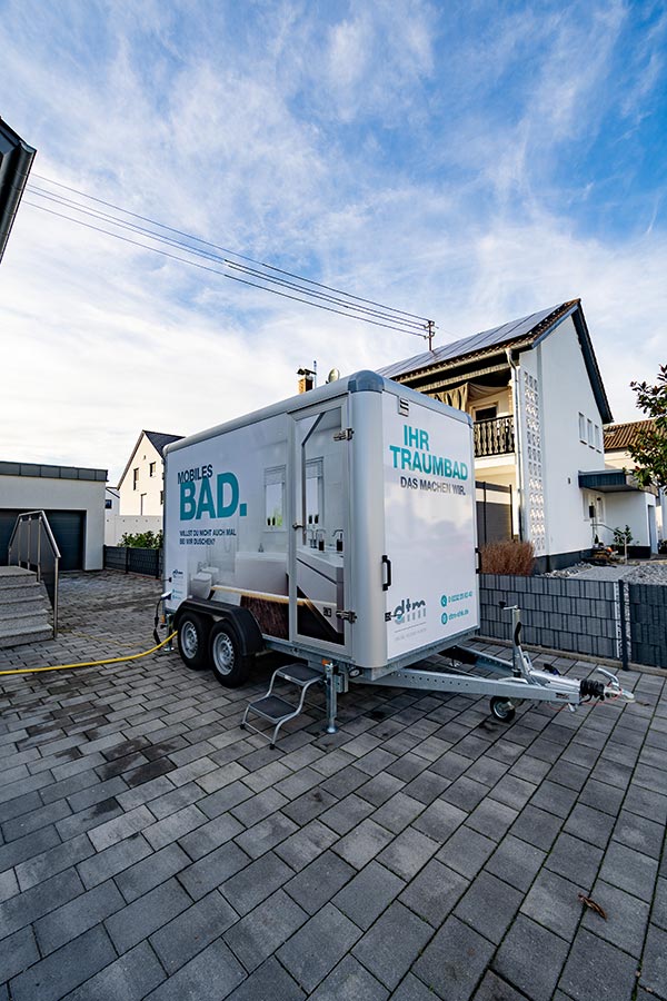 Dusch-Alarm: Sie sanieren Ihr Badezimmer und benötigen dafür eine Übergangslösung? Stabil aufgestellt liefern wir Ihnen ein mobiles Bad im Anhänger. Zögern Sie nicht länger.